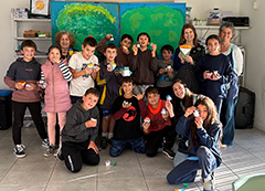 I've just returned from a trip to South America. I went to Colonia de Sacramento, Uruguay and to Buenos Aires, Argentina with Char Morrow. In Colonia we went to the Museo del Origami that Laura Rosenberg has created just 5 years ago. It's very well done, I highly recommend a visit. Laura also arranged for us to teach origami to 4 groups of students at 2 schools. It was a lot of fun. We taught 2 of the classes your Fairy Penguin and of course it was a big hit! We had also taught them a cup and french fries to arm up their fingers and some students used the fries to give the penguin some cool hair. You can see this in the pictures. I thought you'd like to know that your lovely model was shared in Uruguay! Thank you for always allowing me to teach your models :)