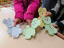 My daughter told me that 2 kids couldn’t stop folding the cute bear-bag. Now they are teaching the cute bear-bag to their friends.