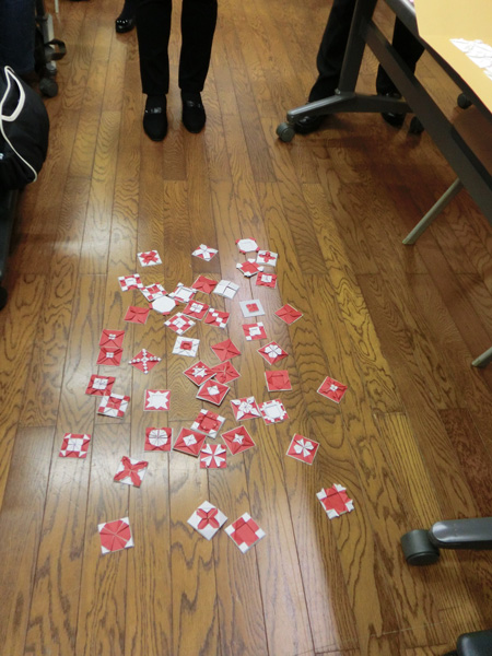 さあ、、、今日は おりがみで 楢の木大学士の野宿 (副題 形成―風化―再生)をみんなで表現します。