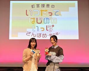 2023年11月5日に、声優の釘宮理恵さんのイベント「釘宮理恵のいつだって、はじめのいっぽ さんぽめ」が、科学技術館 サイエンスホール(東京都千代田区北の丸公園2-1)にて行われました。 お昼の公演では、チャレンジコーナーがあり、釘宮さんと、なんと会場のお客様も一緒におりがみに挑戦されました。最初に全員で簡単なハートを折り、それから、青柳祥子考案のおすわりわんわん。 次に釘宮さん、一人でやや難しいリスに挑戦!完璧に綺麗に折られました。 和やかな時間を一緒に過ごさせていただき、とても楽しかったです。 ■釘宮さんのラジオ番組のHPはこちらです。 https://www.onsen.ag/program/ippo