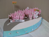 At the 2013 20th Origami Carnival, Shoko received an Idea Award. Her original satirical display showed that nuclear weapons are not good for our world. The display included many rabbits wearing gas masks demonstrating against nukes and a school of fish swimming against nukes.