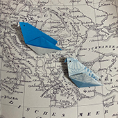 Shoko's creation "Whale with pocket" diagrams were introduced in the June 2025 issue of the NOA magazine. You can insert paper dolls or animals in its gap (pocket) of the whale as seen.